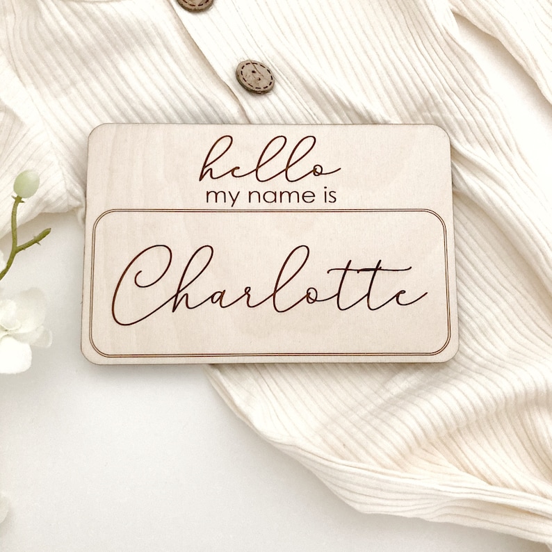 Our Wood “Hello I’m Here” Baby Name Signs are the perfect way to announce the arrival of your precious little one. And it also makes the perfect addition to their nursery!
